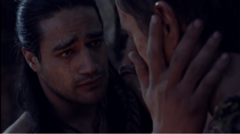 Back in the Rebel camp, Naevia looked on as 500 tortured and bruised men and women returned because she knew Crixus would not be part of that. Nasir, who was also looking on, then asked: “Would that those we held to heart stood among them?” This is one of my favourite scenes. Castus then came over and told him to look on because further on, Spartacus was carrying a broken and bruised Agron! Nasir’s face when he saw Agron is so… I cannot even describe it. He then walked through the crowd looking like he could not believe his eyes that Agron is still alive.